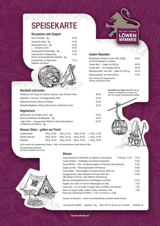 Abwechslungsreich und für jeden Gaumen etwas – bei der Wahl unserer Gerichte orientieren wir uns an den Wünschen unserer Gäste. Während den Spezialwochen bieten wir zusätzliche saisonale und regionale Gerichte an, beispielsweise Poulet aus Wimmis oder Wild aus einheimischer Jagd.